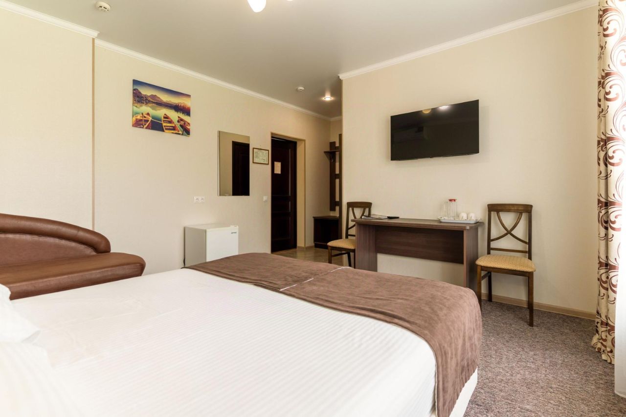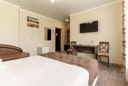 Двухместный номер повышенной комфортности со всеми удобствами. Есть все необходимое одна или две кровати, шкаф, стол, стулья, диван, телевизор. Отопление в номере регулируется индивидуально. Также номер оборудован холодильником и кондиционером.