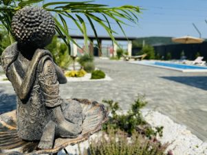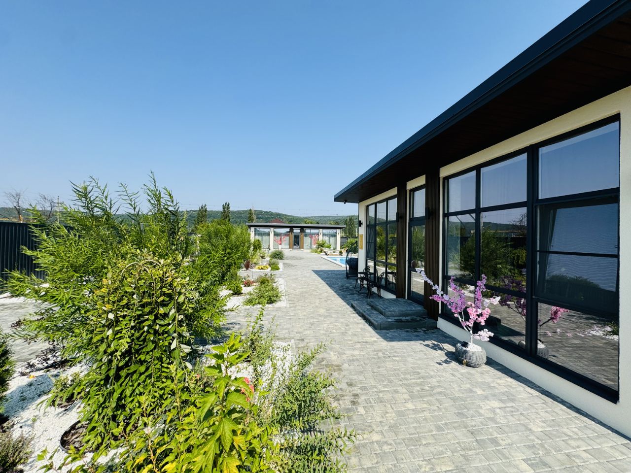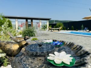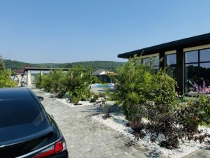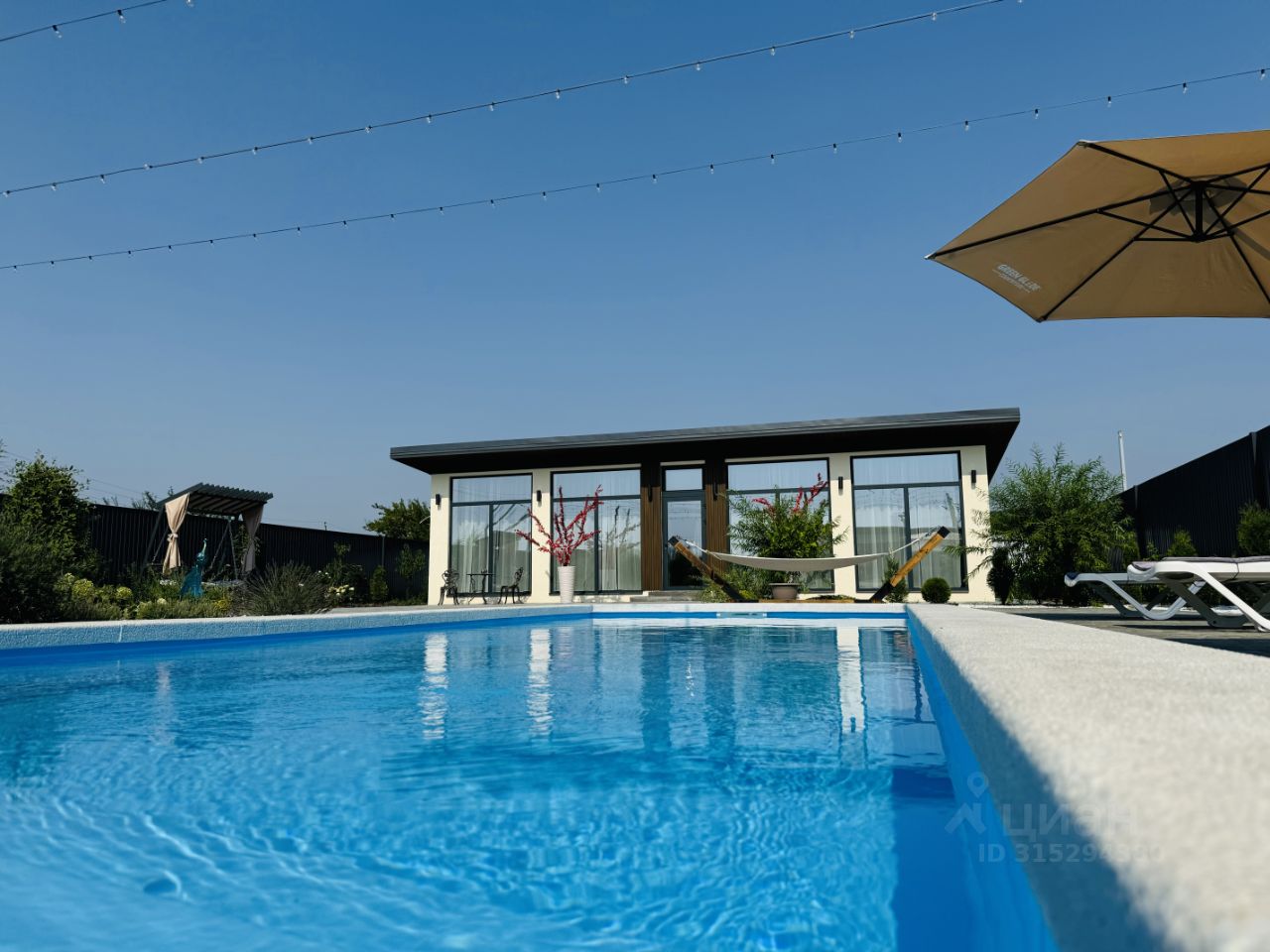 Просторный двор с бассейном, мягкие лежаки под гирляндами огней, свежий воздух и тишина вокруг — всё создано для вашего полного расслабления. Здесь вы почувствуете, как уходят тревоги, а каждый момент наполняется удовольствием: утро с чашкой кофе у воды, ленивый день у бассейна, вечер под уютным светом гирлянд и звёздным небом.