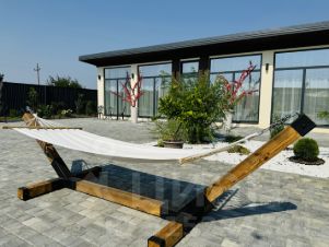 — Уютная зона отдыха с качелями-коконами, где можно провести ленивый день с книгой или бокалом вина.— Современная кухня и кухня с дровяной печью и мангалом, где с удовольствием готовятся как семейные ужины, так и атмосферные барбекю-вечера.— Просторная баня, отделанная натуральным деревом, с солью и ароматом горячего пара — для полного релакса.