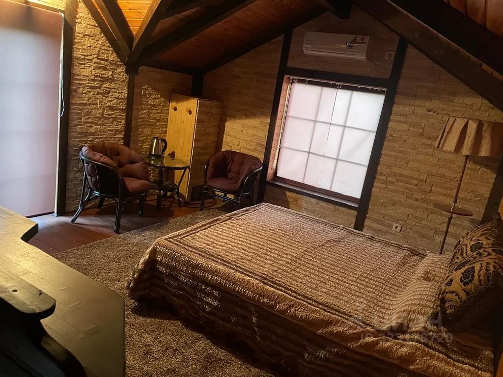 Второй дом — двухэтажный, первый этаж — баня, душ, санузел, второй этаж — уютная спальня с балконом. Двуспальная кровать, кресла, кондиционер, фен, постельное бельё, полотенца. В этом месте два спальных места.