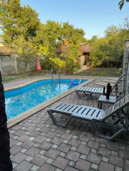 На территории большой бассейн — двухуровневый, баня, шезлонги, три туалета, два в помещении и один на улице, садовая мебель, надувные игрушки для бассейна в теплое время года, мангальная зона (в подарок от нас уголь и розжиг). В связи с пожаробезопасностью используется только уголь.