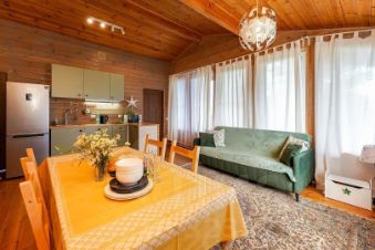 Дом общей площадью 115м2 для размещения до 8-ми гостей. Для комфортного проживания гостей дом оснащен всем необходимым: терраса: 24 м2, просторная гостиная с зоной отдыха, обеденная группа; полноценная кухня с плитой и микроволновой печью и посудой; большой холодильник, чайник, телевизор; 3 изолированных спальных комнаты (двуспальные кровати 160см); раскладной диван 130см в гостиной на 2 персоны; постельное белье и полотенца; возможность поставить кроватку-манеж для малыша; санузел с ванной; кондиционирование и обогрев.