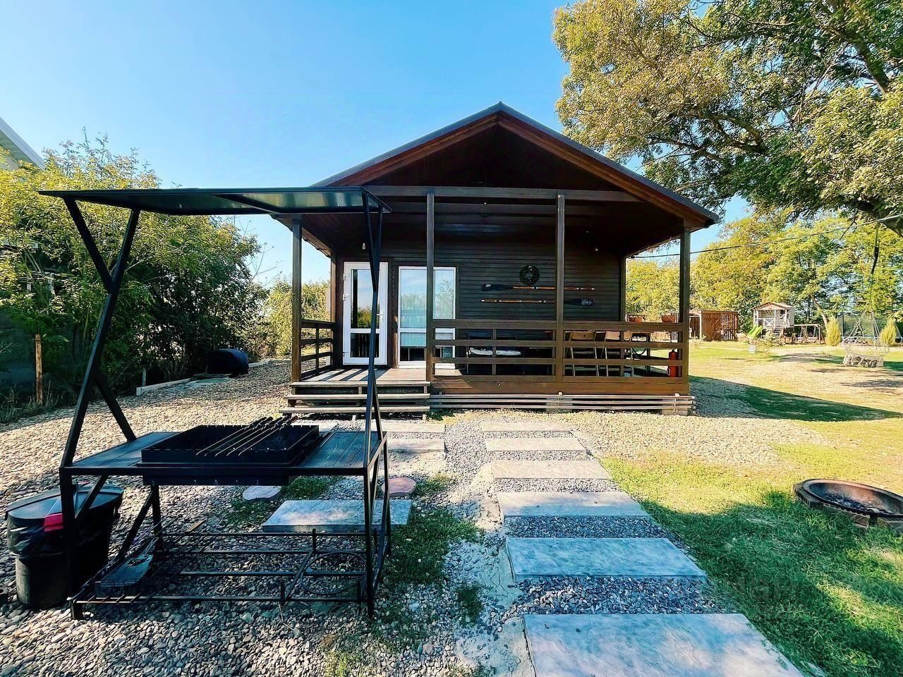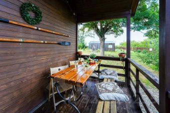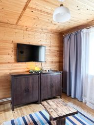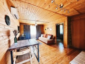 Дом общей площадью 48м2 для размещения для 4-х гостей. Для комфортного проживания гостей дом оснащен всем необходимым: спальня и кухня-гостиная; двуспальная кровать 160см; раскладной диван в гостиной на 2 персоны; постельное белье, детская кроватка для малышей; кухня с бытовой техникой и посудой (без плиты); холодильник, чайник, телевизор, обеденная зона; санузел с душем; кондиционирование и обогрев; обеденная группа на террасе.
