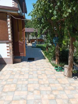 Сдаётся уютный домик в тихом месте у леса и реки. В доме три спальных места, может разместиться до 6 человек. В доме есть всё необходимое для проживания: кухня со всей техникой, холодильник, посудомойка, плита, духовка, микроволновка, блендер и др. В спальнях кондиционер, телевизор, проэктор, вентилятор. Зона барбекю, шампура, казан, коптильня, беседка. Качели, газон для игр, пруд с рыбками.Сауна в зимний период бесплатно.