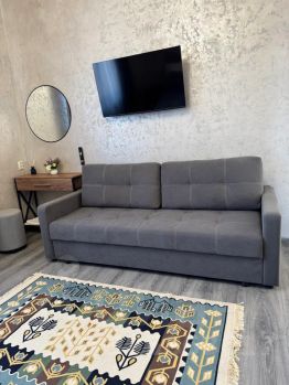 Дом с отдельной большой территорией, с большим подогреваемым бассейном (37 градусов), с джакузи и водопадом, сауной. Две большие изолированные спальни с двуспальными кроватями и дополнительные спальные места (два дивана, которые могут раскладываться в двуспальные кровати). В общей сложности с комфортом разместятся 8 человек. Большой просторный холл-гостиная с большим обеденным столом и мягкими креслами, рассчитанный на 10 человек. Кухня со всем необходимым оборудованием, индукционной плитой, микроволновой печью, кофемашиной, посудомоечной машиной, холодильником. Встроенная система кондиционирования и вентиляции помещений, теплые полы. Сауна из сибирского кедра, смарт-ТВ во всех комнатах. Во дворе уютная мангальная зона с креслами и столом в стиле лофт, дровяным камином. Отдельные душевые и туалет. Беседка с теплым полом. Качели во дворе. Есть смежный дом для дневного пребывания за отдельную плату, тоже с бассейном, беседкой и отдельной территорией для отдыха. Из местных достопримечательностей — озеро с лебедями и рыбалкой в 100 метрах от дома, река Белая в 500 метрах. Со смотровой площадки прекрасный вид на предгорья Кавказа. Дом находится в частном секторе, тихое и уютное место. Есть парковка с видеонаблюдением для 10-15 машин, парковка бесплатная.