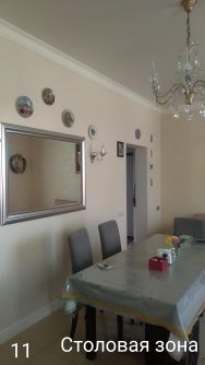 Три изолированных спальни, кухня- столовая, три санузла, гардеробная. Сплиты, газ плита, посудомоечная машина, холодильник, два телевизора,мебель, посуда полностью.