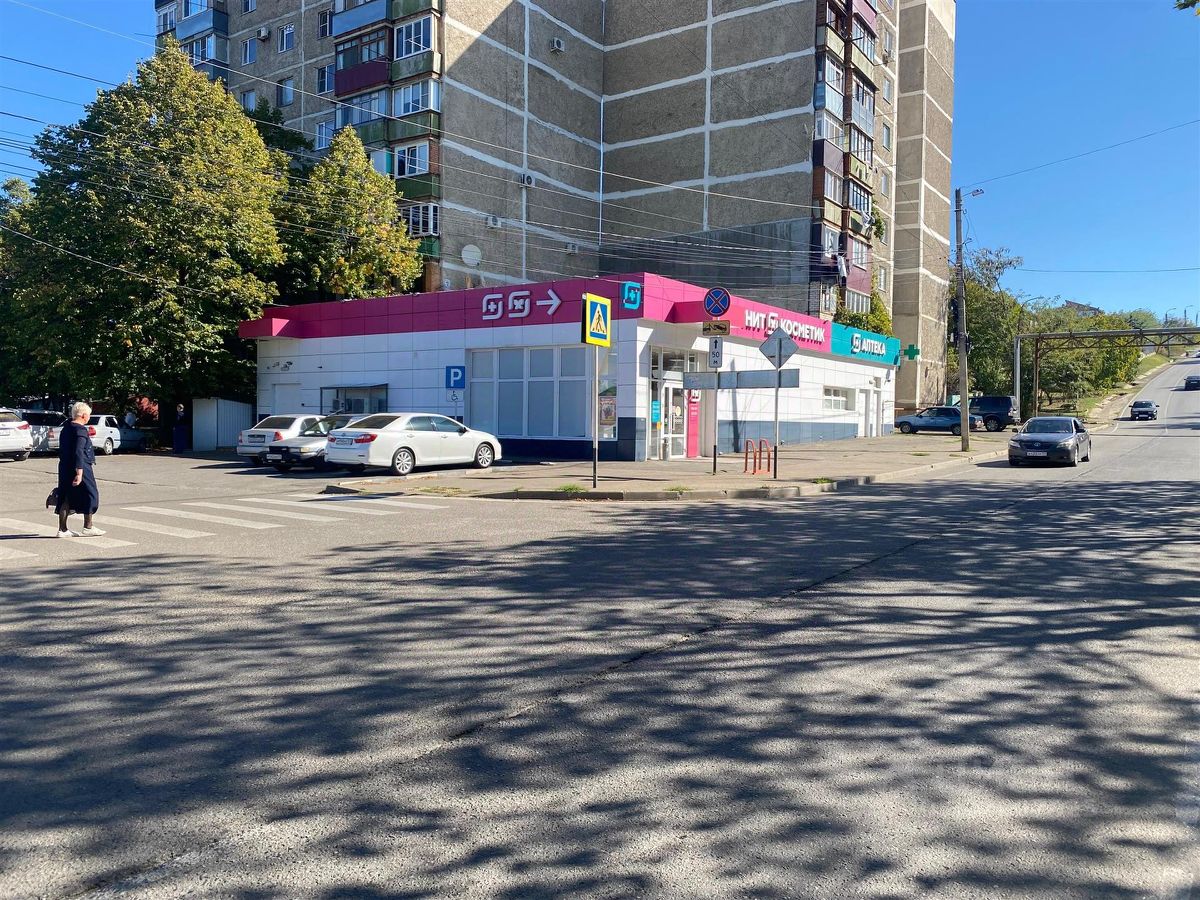 Рядом магнит, остановка, пешеходный переход напротив входа в магазин. Вблизи ряд социальных объектов поликлиники, школа, дом престарелых. Активный пешеходный и автомобильный трафик.