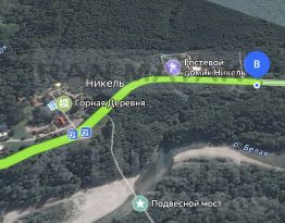 Расположен по соседству с турбазой "Горная Деревня"