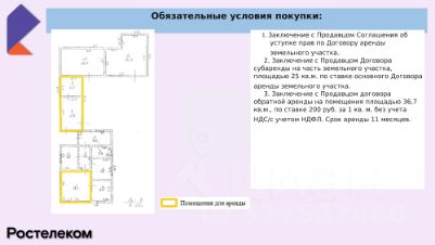 Договор обратной аренды на 36,7 кв.м. по ставке 200 руб./м² (без НДС). Срок аренды 11 месяцев.