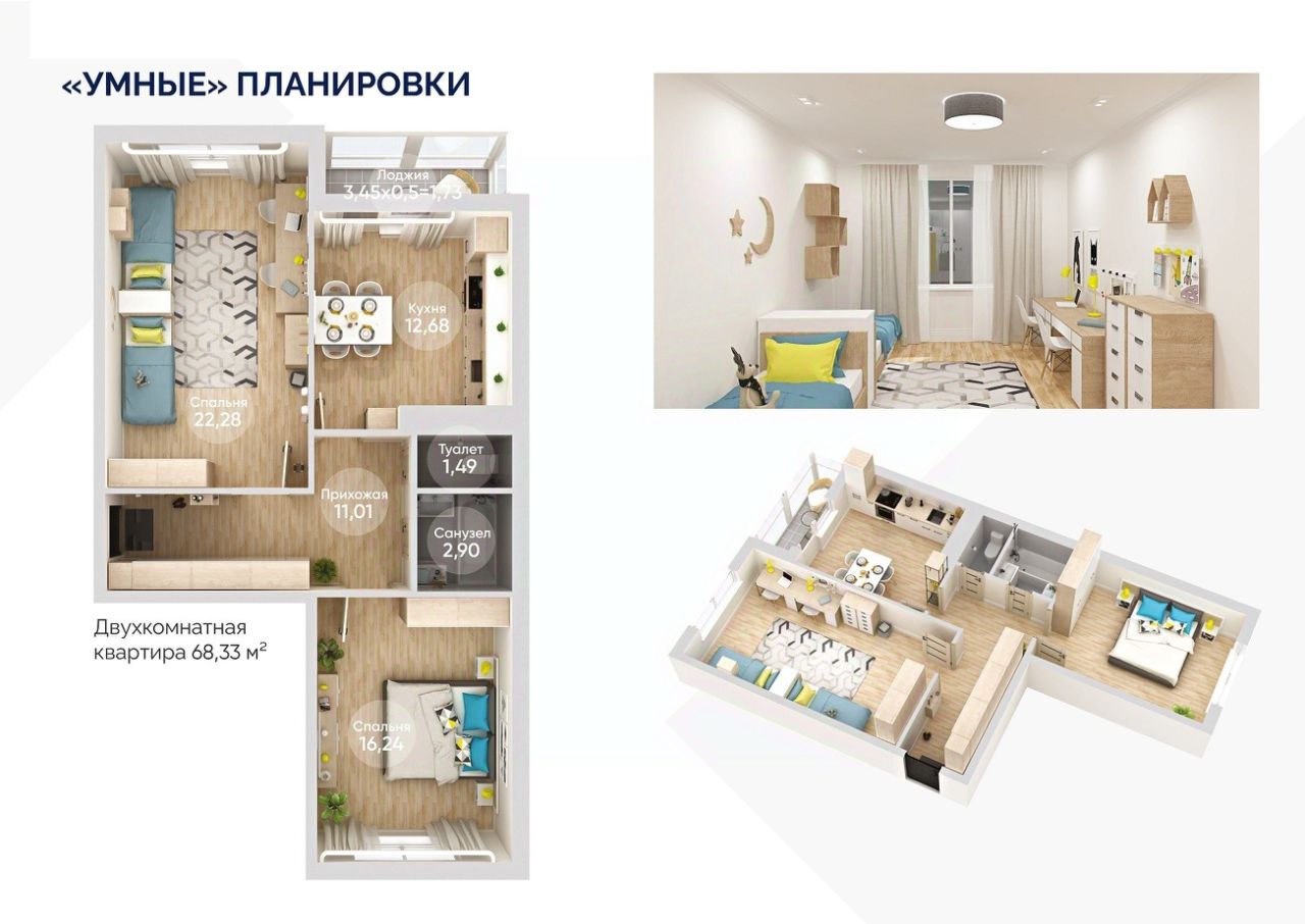 Общая площадь68,33 м²