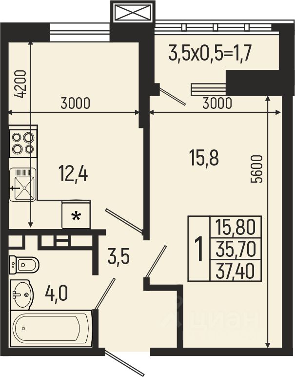 37,4 м²