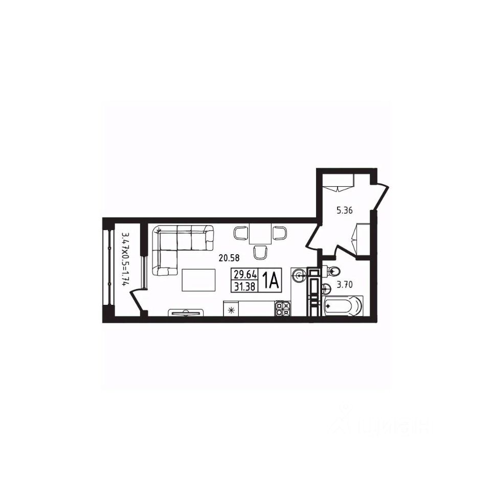 Жилая площадь20,6 м²