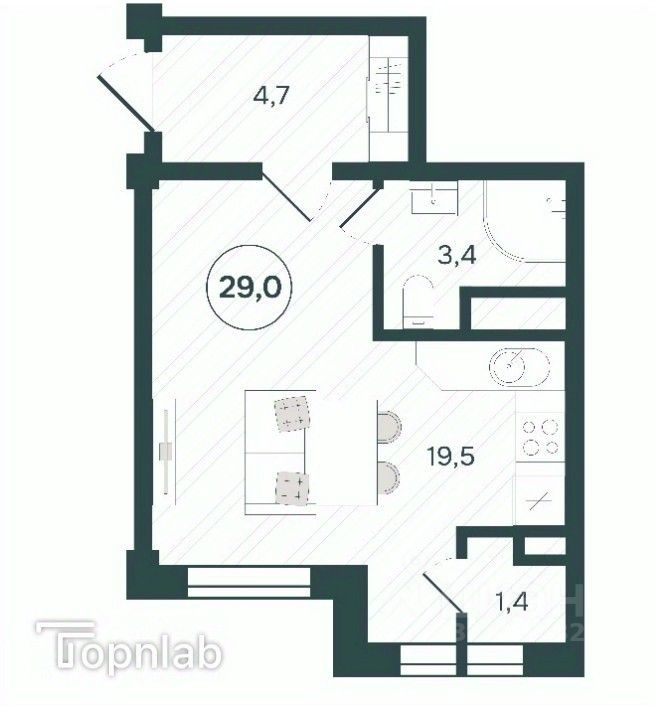 Квартира 29м2 с двумя окнами.