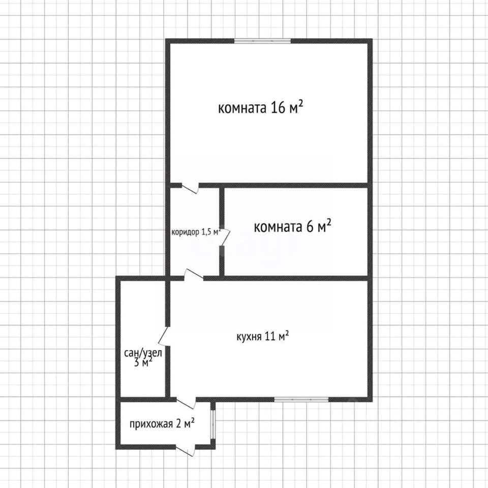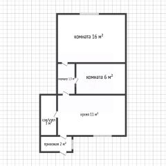 Общая площадь включает одну большую комнату, которую можно использовать как гостиную или спальню, и компактное помещение, подходящее для кабинета, гардеробной или детского уголка.