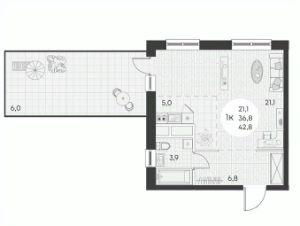 Общая площадь42,8 м²