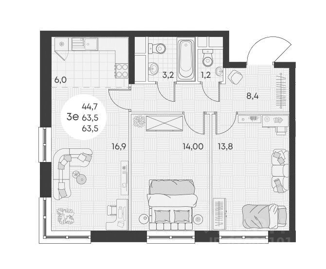 Общая площадь63,5 м²