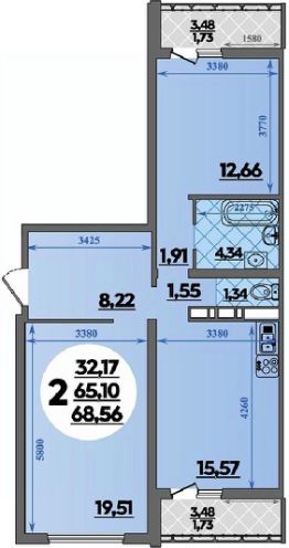 Продаётся 2-комнатная квартира в строящемся доме (Литер 8), срок сдачи: IV-кв. 2026, общей площадью 68.56 кв.м., на 8 этаже.