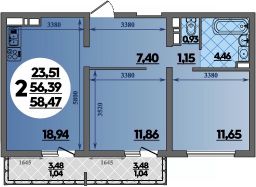 Продаётся 2-комнатная квартира в строящемся доме (Литер 8), срок сдачи: IV-кв. 2026, общей площадью 58.47 кв.м., на 9 этаже.