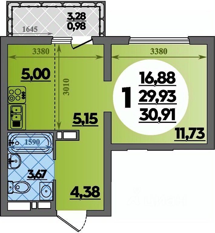 Продаётся студия в строящемся доме (Литер 8), срок сдачи: IV-кв. 2026, общей площадью 30.91 кв.м., на 9 этаже.