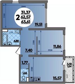 Продаётся 2-комнатная квартира в строящемся доме (Литер 8), срок сдачи: IV-кв. 2026, общей площадью 63.61 кв.м., на 1 этаже.