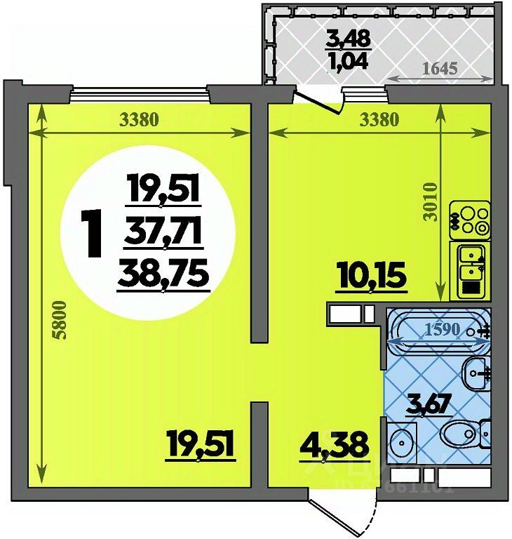 Продаётся 1-комнатная квартира в строящемся доме (Литер 8), срок сдачи: IV-кв. 2026, общей площадью 38.75 кв.м., на 3 этаже.