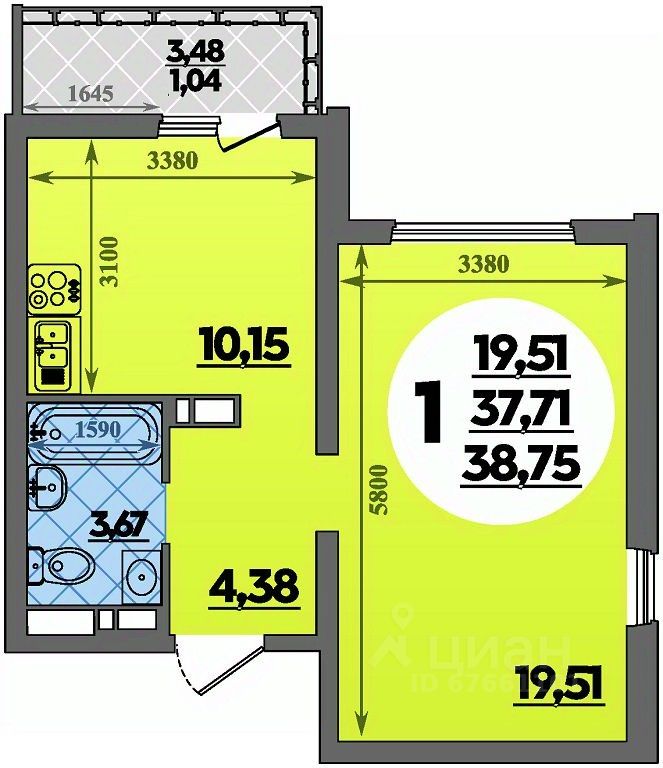 Продаётся 1-комнатная квартира в строящемся доме (Литер 8), срок сдачи: IV-кв. 2026, общей площадью 38.75 кв.м., на 3 этаже.