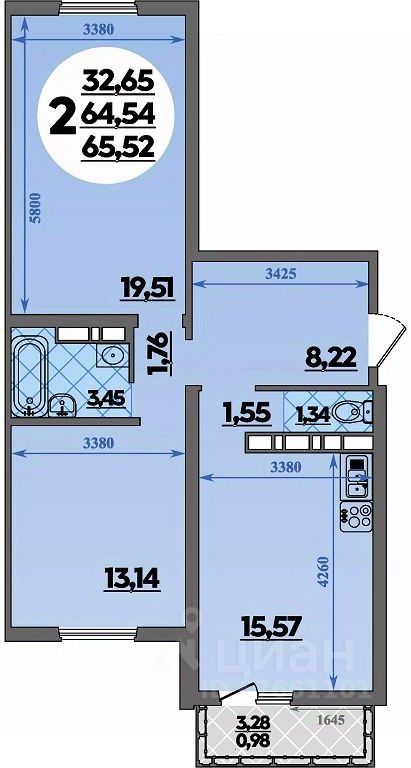 Продаётся 2-комнатная квартира в строящемся доме (Литер 8), срок сдачи: IV-кв. 2026, общей площадью 65.52 кв.м., на 6 этаже.