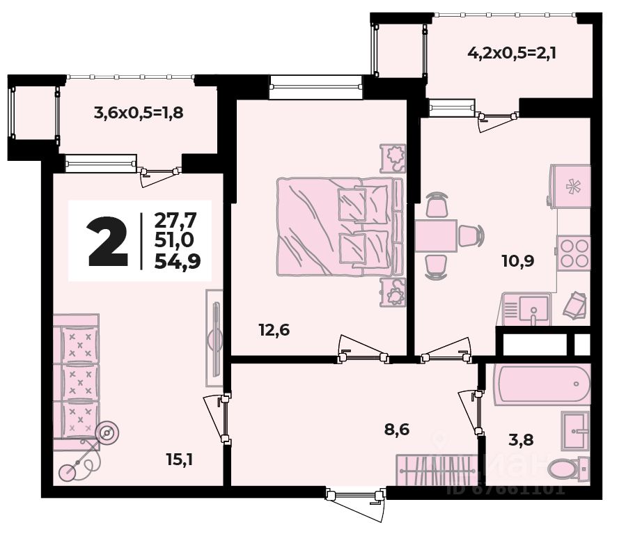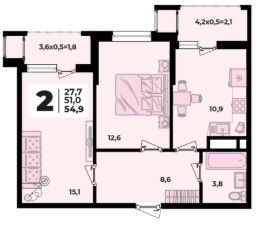 54,9 м²