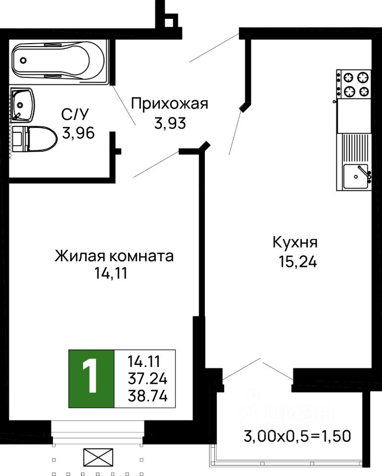 Однокомнатная квартира предлагает все необходимое для комфортной жизни в компактном формате. Просторная прихожая позволяет организовать удобную систему хранения, кухня-ниша гармонично вписана в жилую зону, не нарушая целостности интерьера, а лоджия добавляет полезную площадь — для отдыха, хранения или любимых растений.
