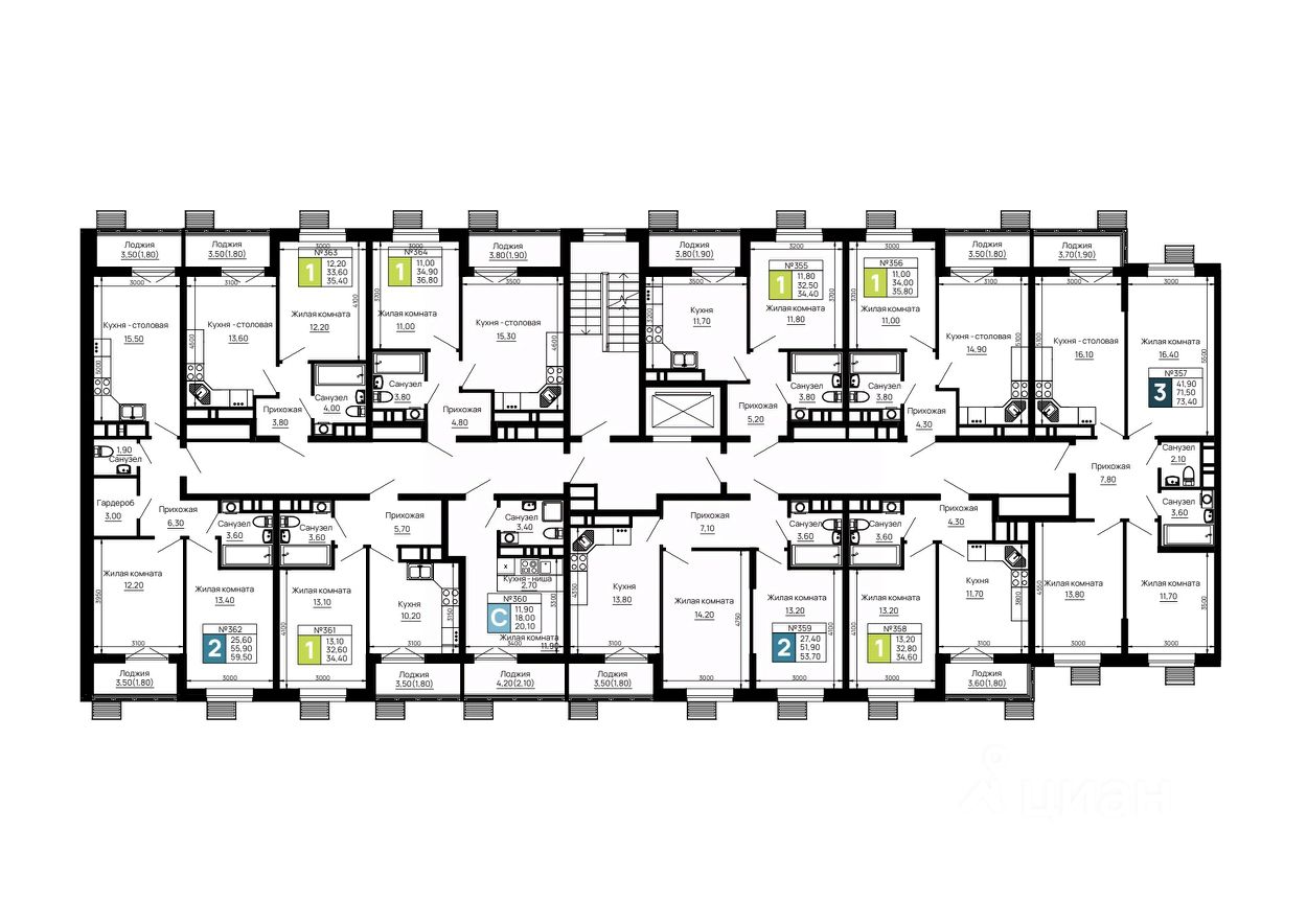 Литер 1, 6 этаж, 358.