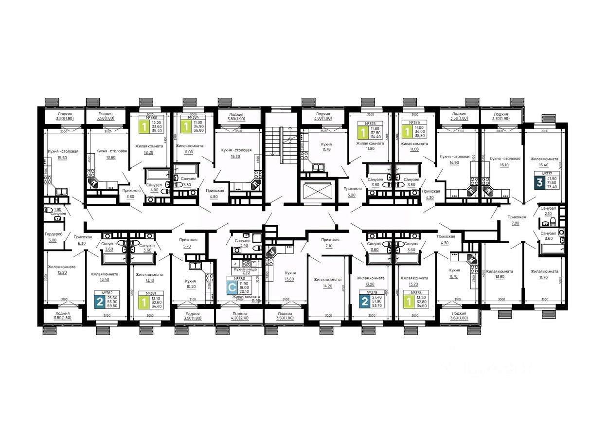 Литер 1, 8 этаж, 382.