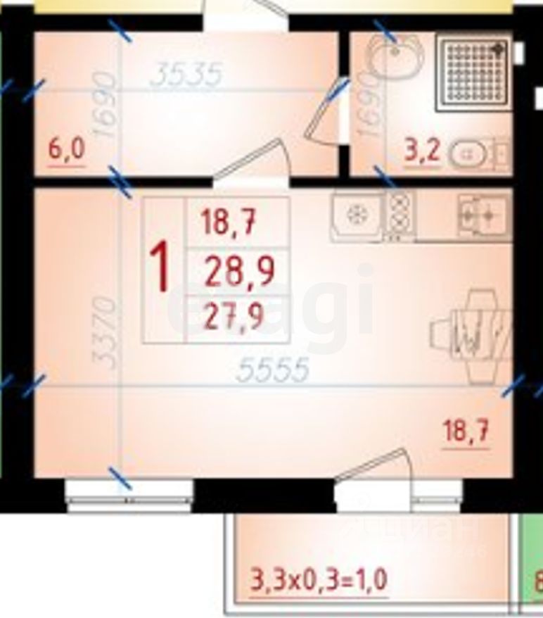 Продается отличная, большая студия на комфортном 3 этаже пятиэтажного дома. Дом кирпичный, что обеспечивает максимальное тепло и звуко изоляцию. Год постройки 2023, дом сдан, документы получены. Площадь 28 м2+3,3 м2(балкон). Планировка студии самая грамотная. Два окна!!! Комнату при желании можно зонировать. Прихожая 6 м2 с нишей под гардеробную, совмещенный санузел 3,2 м2, комната 18,7 м2, балкон 3,3 м2. Выполнена предчистовая отделка. Закрытая территория комплекса, благоустроенная придомовая территория. Недалеко от комплекса построена новая школа, которая будет 1 сентября открыта для ваших деток. От комплекса к школе укладывают очень удобный тротуар. В шаговой доступности магазины, остановки общественного транспорта, рынок "Манорама". Документы готовы к сделке. Один взрослый собственник. Готовы выслушать ваше предложение по цене.