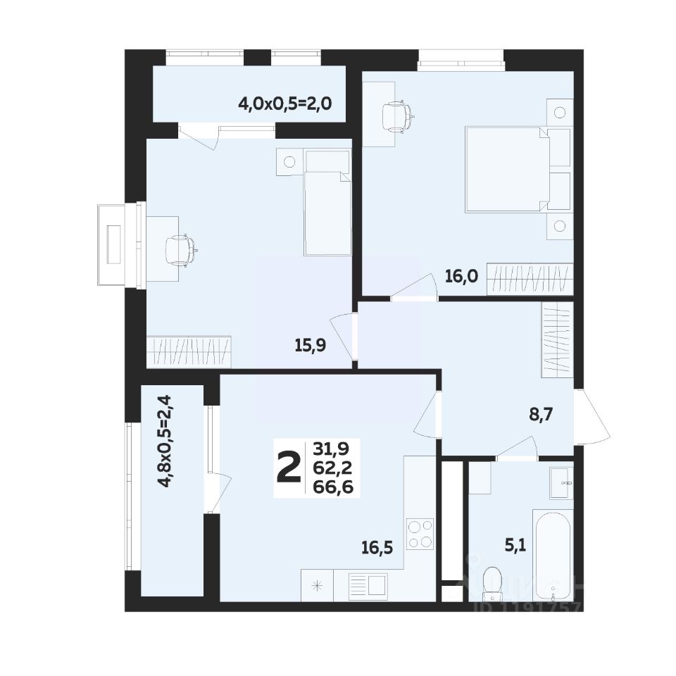Продаётся 2-комнатная квартира в строящемся доме (Литер 1.1), срок сдачи: IV-кв. 2025, общей площадью 66.6 кв.м., на 8 этаже. Жилой комплекс "MegaCity" от застройщика "ГК Дарстрой" по улице Бжедугская в ауле Новая Адыгея.