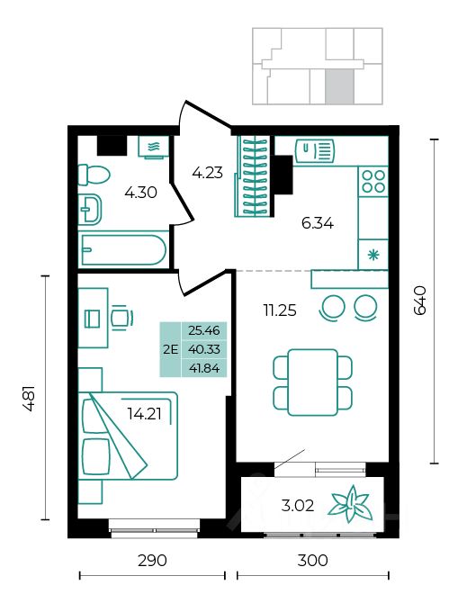 Общая площадь41,84 м²