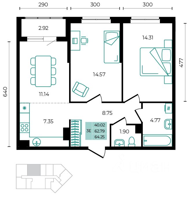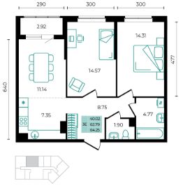 Общая площадь64,25 м²