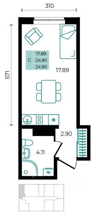 Общая площадь24,9 м²