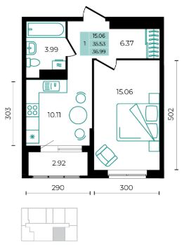 36,99 м²