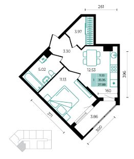 Общая площадь37,88 м²