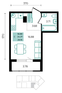 Общая площадь26,16 м²
