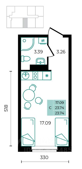 Общая площадь23,74 м²