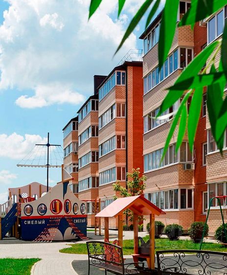 Жилой комплекс комфорт класса с ухоженной озелененной территорией, видеонаблюдение, дома малой этажности, большое количество бесплатных парковочных мест, детские и спортивные площадки