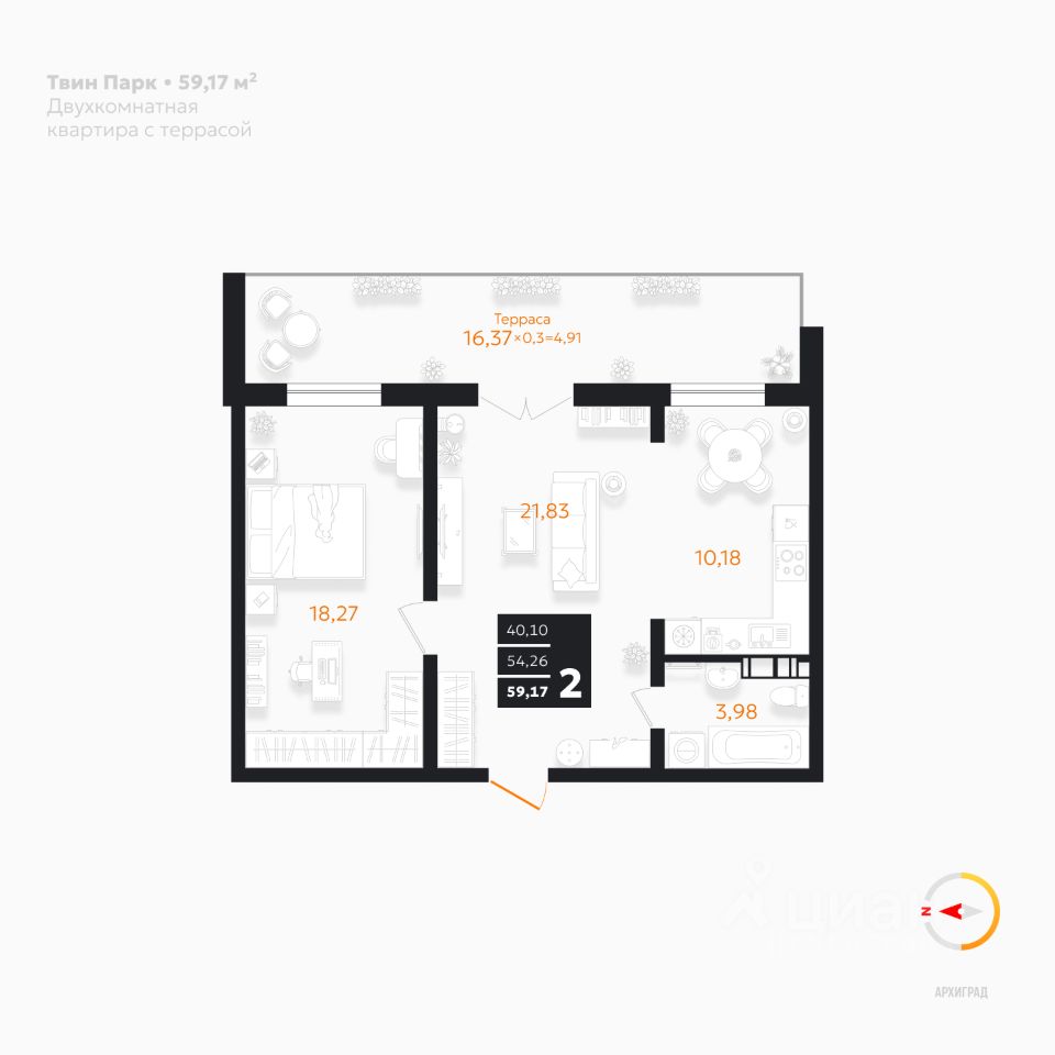 Общая площадь59,17 м²