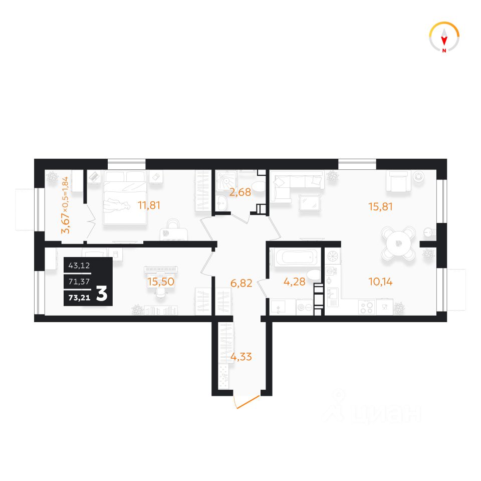 Общая площадь73,21 м²