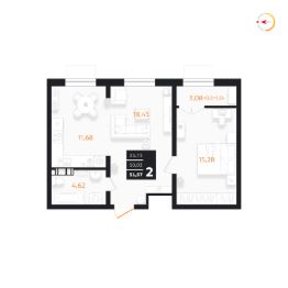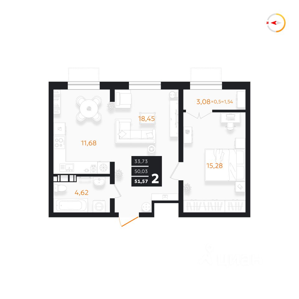 Общая площадь51,57 м²