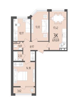 Общая площадь69,69 м²