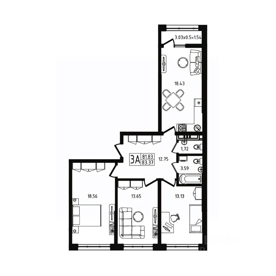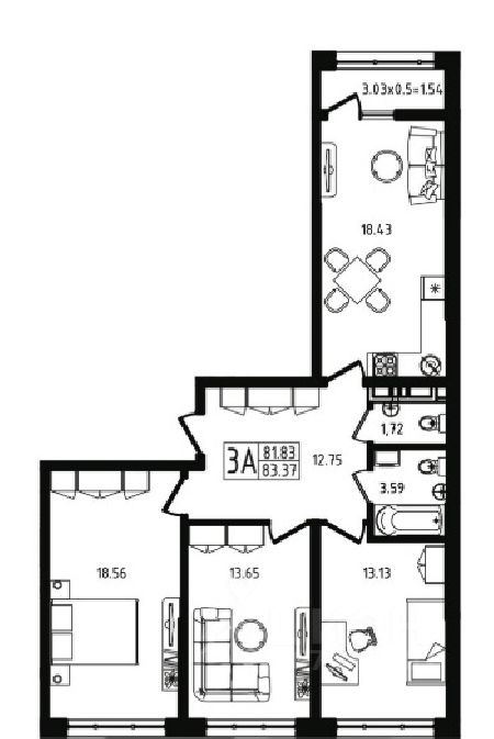 Общая площадь83,37 м²