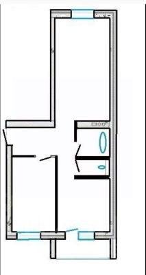 Общая площадь - 54,3 кв.м, кухня - 9 кв.м