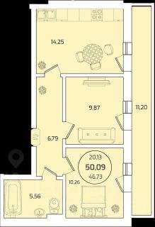Общая площадь - 50,9 м²