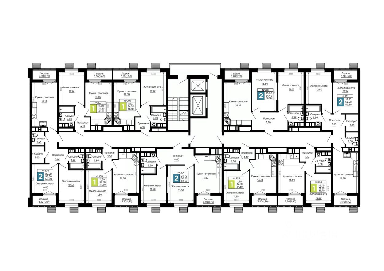 Общая площадь59,3 м²