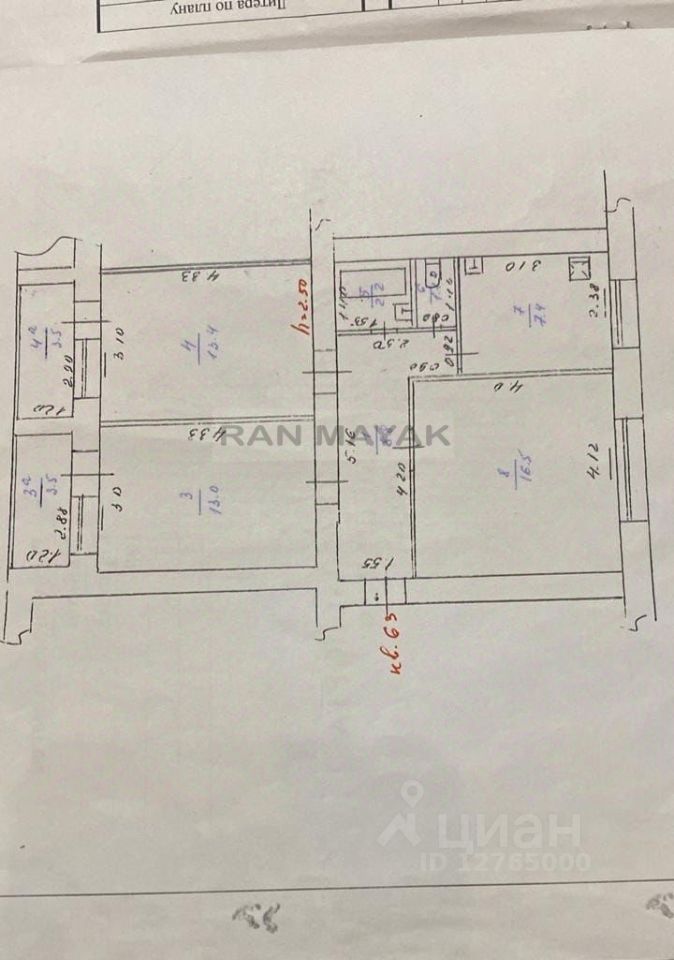 Арт. 88387838 Продается 3-комнатная квартира на 1 этаже в кирпичном доме!